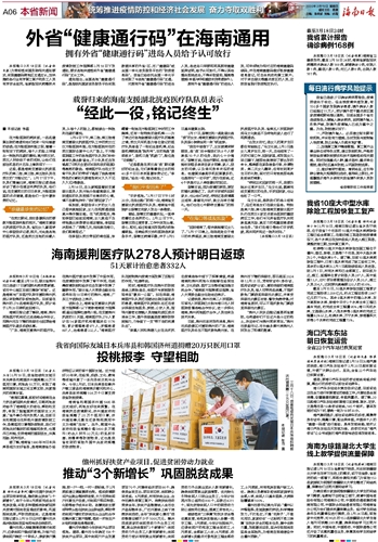 海南日报 本省新闻统筹推进疫情防控和经济社会发展 奋力夺取双胜利 006 2020-03-191 2020年03月19日 星期四