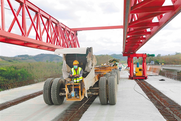 “春节前,桥墩上一片箱梁都没有,如今大桥拔地而起,都是工人们全力奋战的成果!”儋白高速公路项目施工负责人黄华杰自豪地说。