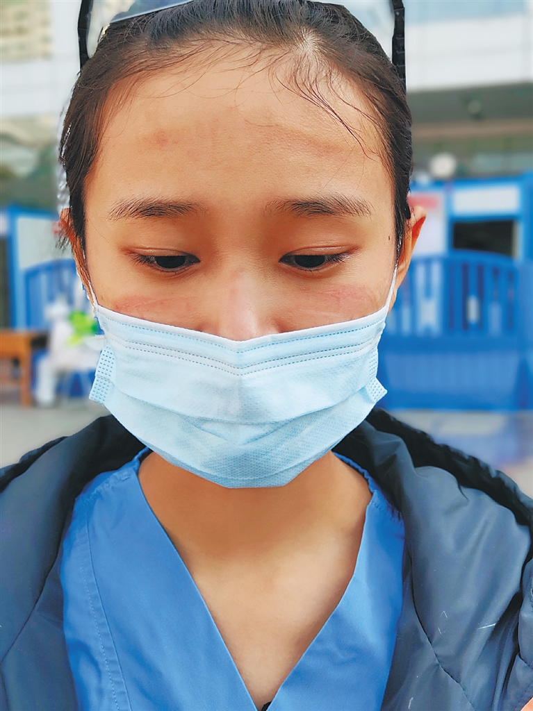 与其他同事相比,吴强有个劣势:双眼高度近视,约达600度。“戴眼镜就多了层压迫,而且一个班次6个小时戴下来很难受;但是不戴的话,很难全力以赴工作,更别提抽血等精细活儿了。”