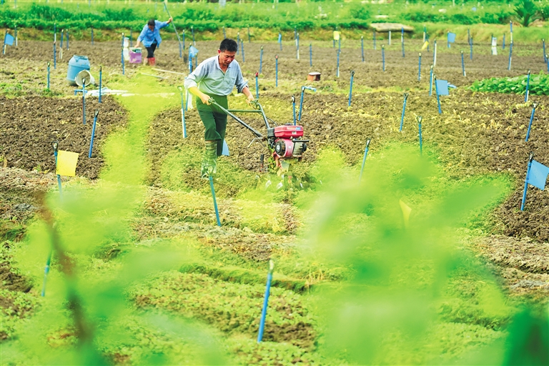 | 3月20日,琼海市嘉积镇的一个蔬菜种植基地,农户趁着好天气在田间耕地、播种。 特约记者 蒙钟德 摄 |