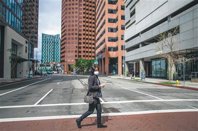 图为一名戴着口罩的女子走在洛杉矶街上。 新华社/法新