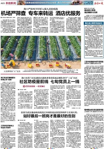 海南日报 本省新闻统筹推进疫情防控和经济社会发展 奋力夺取双胜利 003 2020-03-221 2020年03月22日 星期日