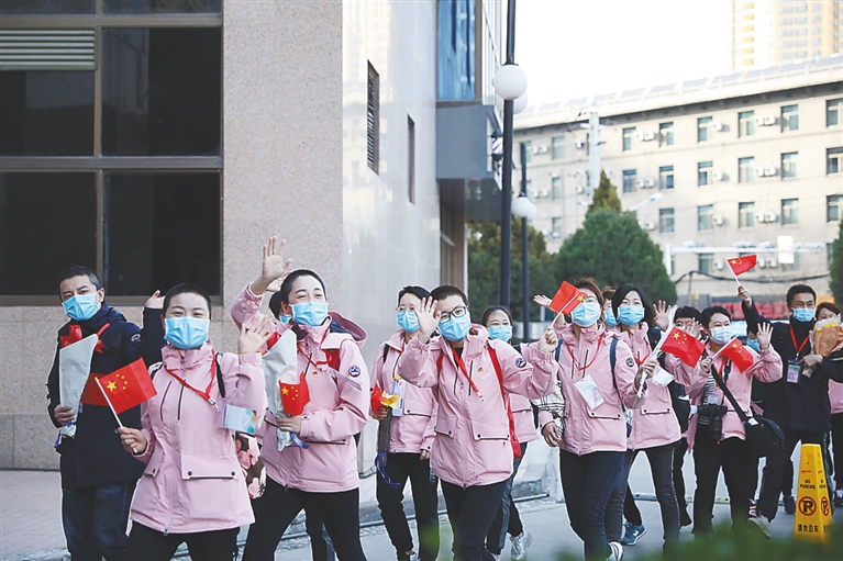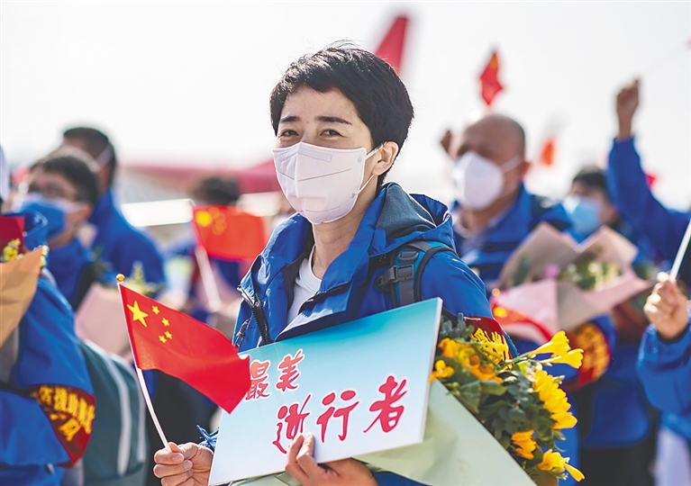 这是以生命赴使命的热血担当——新冠肺炎疫情发生以来,4.2万名白衣天使奔赴荆楚,各地医务工作者同心聚力,在同病魔的较量中立下头功。