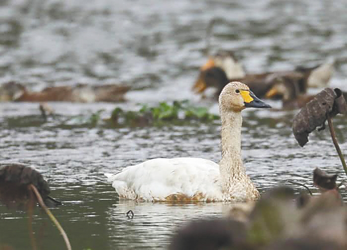 孑然游弋于水中,修长的脖颈时而挺拔,时而深埋在胸前茂密的白羽中……不久前,家住五源河附近的村民谭胜利第一次见到这只有些灰头土脸的小家伙时,以为是谁家养的“鹅”溜了出来。直到小家伙扑腾展翅一跃飞起,才让人不禁惊呼:这是小天鹅——海口有史以来首次记录到的一种国家二级保护动物!