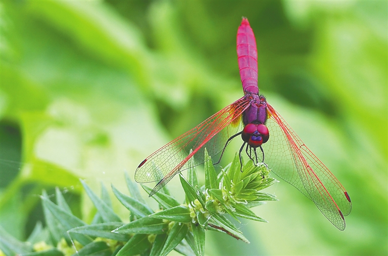 高达40米的秋枫冠如伞盖,三角梅、鸡蛋果和朱槿长势汹汹,与深浅不一的蕨类植物一道,在五源河畔打造出立体多面、色彩丰富的植物群落景观。而河边用枯木搭成的“昆虫旅馆”以及随处可见的小微湿地,更通过营造仿自然生境吸引蜜蜂、胡蜂、甲虫等昆虫前来觅食栖息,让这里的生物群落结构得以进一步丰富。