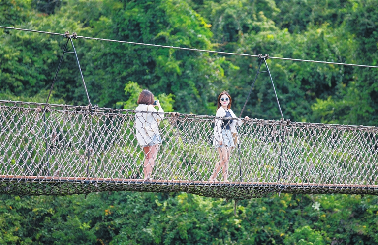 眼前是海天一色,周身是绿意盎然。3月23日上午,在三亚亚龙湾热带天堂森林公园,来自江苏、河南等地的游客三三两两,或在栈道上漫步,或在索道上合影留念,尽享海岛的美丽风光。“许久不出门,旅行第一站就选择了海南,这里的景色真是令人心旷神怡。”来自江苏的游客张女士表示。