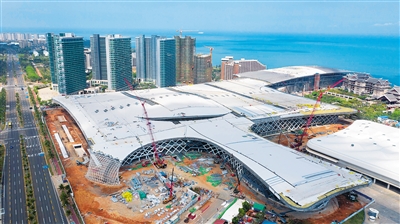 目前,海南国际会展中心二期项目的屋面板施工已经完成了90%,预计4月中旬可以结束屋面板施工。据了解,海南国际会展中心二期扩建项目总建筑面积约为19.86万平方米,建成后将会成为国内领先的现代化绿色智能会展场馆。 本报记者 李天平 摄