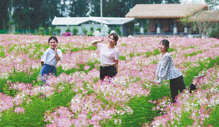 3月25日,在昌江黎族自治县海尾湿地公园,鲜花开得正艳,五彩斑斓的花海美不胜收,吸引众多游客赏花踏青。本报记者 陈元才 通讯员 杨耀科 图\文