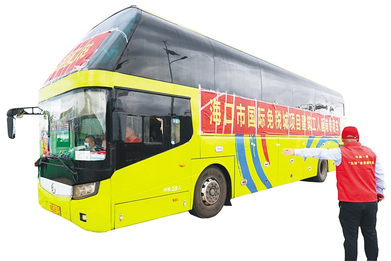 经秀英区新冠肺炎疫情联防联控工作指挥部协商后,决定由刘锋带队,包两辆大巴车直赴贵州遵义“千里招技工”。3月6日,经过两天的昼夜兼程,刘锋“点对点”成功接回了58名钢筋工和混凝土工,为海口国际免税城项目解决了技术工人短缺难题。
