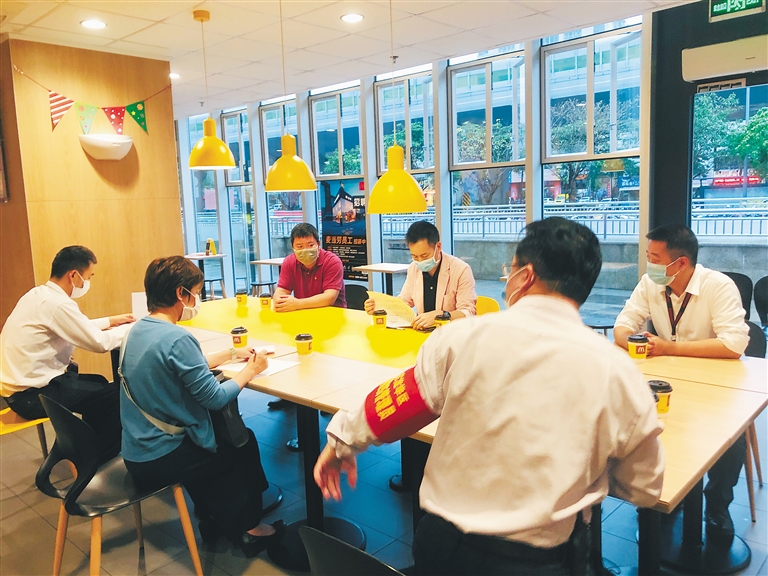 随着龙华区成为低风险区后,该区决定调整防控策略,逐渐开放餐饮店堂食。杜秀良从麦当劳、肯德基等快餐店开始试点,明确顾客只能一人一桌,桌间距大于1米,全部面向同一方向进餐。且每位客人离开后,桌面要立即消毒,10分钟后才能迎接第二位客人。