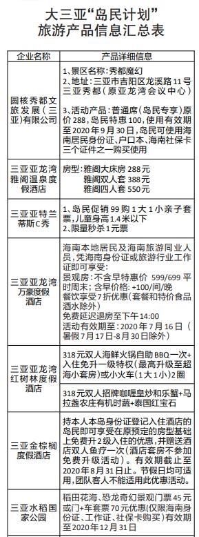 在我省刚刚发布的《海南省旅游业疫后重振计划——振兴旅游业三十条行动措施(2020-2021年)》中,明确提出要“激发大众旅游热情,有序释放消费潜力”。开展“海南人游海南”活动被作为重振市场的第一步,提出要“引导、支持全省A级景区发行年度联票,对省内居民推出套票优惠。倡导、刺激乡村旅游,引发海南乡村游的热潮,促进消费扶贫……”作为中国最知名的休闲度假目的地,以三亚为核心的大三亚旅游圈,从海棠湾到亚龙湾再到三亚湾,众多高星级度假酒店推出了专门针对岛民的优惠措施。呀诺达等景区则面向岛民发售年票,让本岛居民能够轻松享受到家门前的一流旅游设施和度假体验。一度“暂停”的旅游消费,正在海南人游海南的热情中被重启加速。正在全力推进中的海南自贸港建设,让这个美丽的海岛显现出别样的生机与活力。