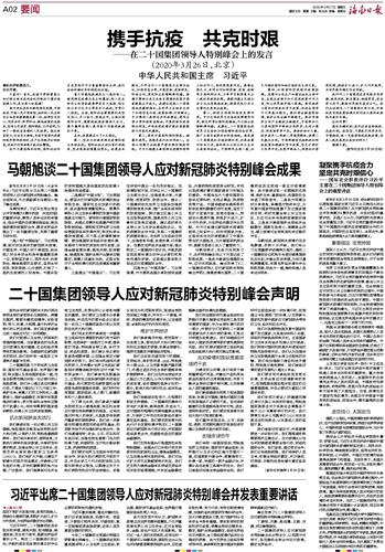 习近平出席二十国集团领导人应对新冠肺炎特别峰会并发表重要讲话