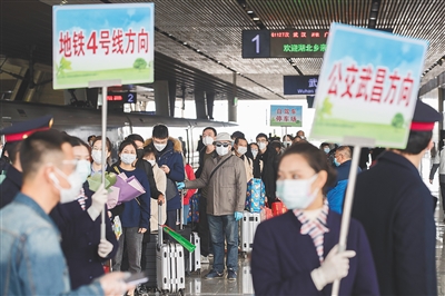 武汉火车站重启首日 1.2万名湖北乡亲坐高铁回家