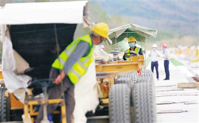 除扶贫基地务工人员干劲足外,在白沙各大重点项目施工现场同样热火朝天。在白沙牙叉镇茶园路北侧的高峰村生态移民搬迁建设项目工地上,多个打桩机满负荷运行,不时有大型运输车辆载着建材驶进,数十名工人分工有序,有的搬卸大型建筑材料,有的往地基里浇筑水泥;在儋白高速公路白沙段施工现场,一排排桥梁塔座已筑起,工人们正在操控吊车稳稳地衔接桥面并固定,飞架于山岭之间的高速公路雏形已显。