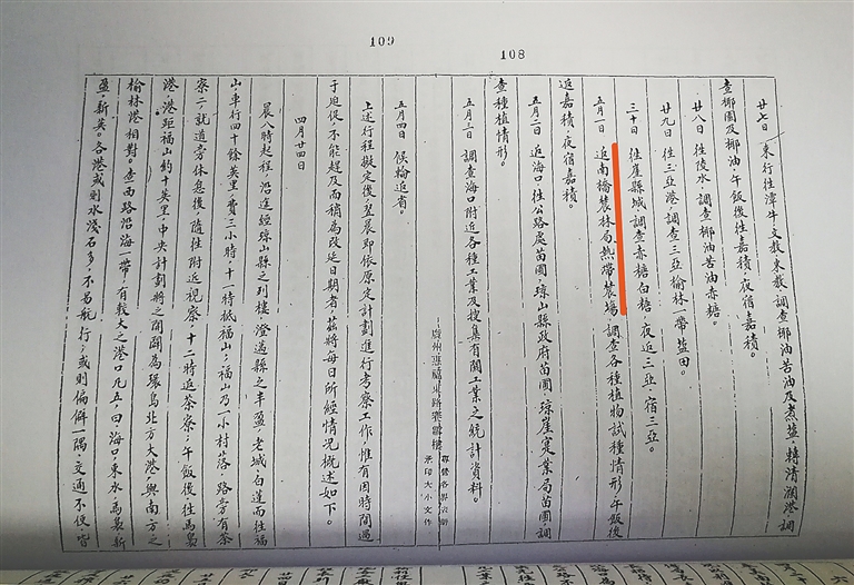 职道上年请开榆林港埠头,(此次)出南林后,同张主事廷钧亲勘其地。据土人云:“越南之役,法屯兵、泊轮十八艘,逐日操演。”崖协、牧不问,琼镇、道不知,幸款局已定,不然琼事不堪设想。书今日请开港,实为筹海计也。港门两岸,宜筑炮台控制之,内立埠头,中可容轮船数十艘,通黎山之出产……其港……与香港不相上下,海口水浅,高之十倍。此处一开埠头,则崖东、南、西三路源头均活,实为富琼第一要策。