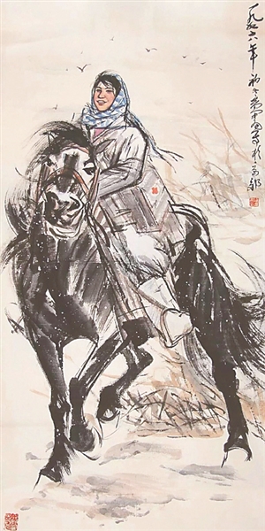 上世纪六七十年代,田间地头一批“半农半医”的卫生员,常常两脚泥巴,一身粗布衣裳,以朴素实用的治疗,满足着当时农村大多数群众的初级医护需要。以表现边疆人物著称的黄胄,画过一系列《出诊图》《风雪出诊图》,描绘背着药箱的女医师或在雪地上疾行赶路,或骑着马儿迎风前行。