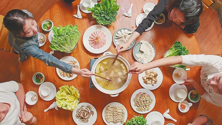 中华饮食文化源远流长,饮食不仅仅是为了满足人们的口腹之欲,也与人情世故、民俗风情等紧密结合起来。在众多美食中,火锅是一个很温暖的象征,意味着家人与朋友的团聚。《沸腾吧火锅》在热气蒸腾的氛围里,将老百姓的喜怒哀乐、柴米油盐、家长里短娓娓道来。在海南糟粕醋火锅这一集中,燕嫂每周吃一次火锅,这是她与小城亲戚相聚的仪式。在云南野生菌火锅的故事里,云南人进山采来珍贵的鸡枞与松茸,是为了迎接远方打工归来的亲人。纪录片从食物出发,突出了日常饮食与家庭的重要关系。而火锅由于聚餐而食的特点,更能凸显中国人骨子里对家人的珍重,对团圆的渴望。