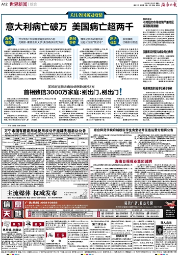 | 海南日报 世界新闻综合 012 2020-03-301 2020年03月30日 星期一 |