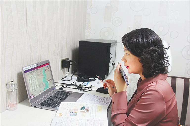 从传统课堂教师到“菜鸟主播”,老师们需要学习很多网络操作技术,有人调侃“难度堪比再就业。”和许多老师一样,刚开始录制微课时,冯珺也遇到了录制技术不熟练等困难,“和传统课堂拿着教材上课不同,网络课堂需要老师借助电脑、手机等工具录制微课、微视频。我除了用手机录制视频、课件外,还要借助录屏大师App对视频进行剪辑合成。”