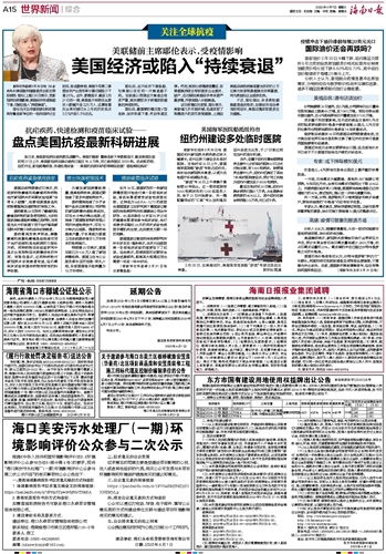 海南日报 世界新闻综合 015 2020-04-011 2020年04月01日 星期三