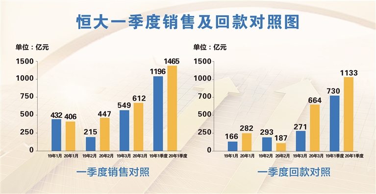疫情期间,恒大谋定思变实施“网上销售”,掀起了颠覆性的营销革命:销售额1465亿大增23%,销售回款1133亿大增55%,行业排名第一,刷新公司一季度销售及回款最高历史纪录,此为顺应“天时”;