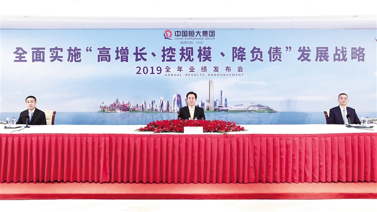 许家印在发布会上宣布,“恒大从2020年开始转变发展方式,全面实施‘高增长、控规模、降负债’的发展战略,要用最大的决心、最大的力度,一定要把负债降下来。”