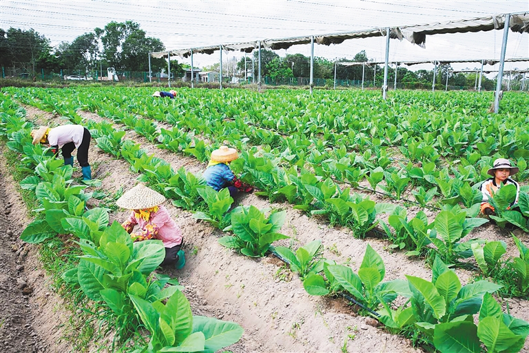 扶贫企业是贫困人口增收的重要平台,不仅为脱贫户提供产业收益,还给贫困劳动力提供就业机会。3月31日,在儋州光村雪茄烟叶种植基地,近1000名附近村民来基地打工。该基地是扶贫企业,共吸纳光村镇贫困户产业发展资金186.89万元,帮扶光村镇建档立卡脱贫户272户1172人。光村镇红光村村民吴根英的丈夫生病,她无法外出打工,如今在基地负责烟叶分级,“在家门口打工,能照顾家里人,还能赚钱养家。”吴根英说。