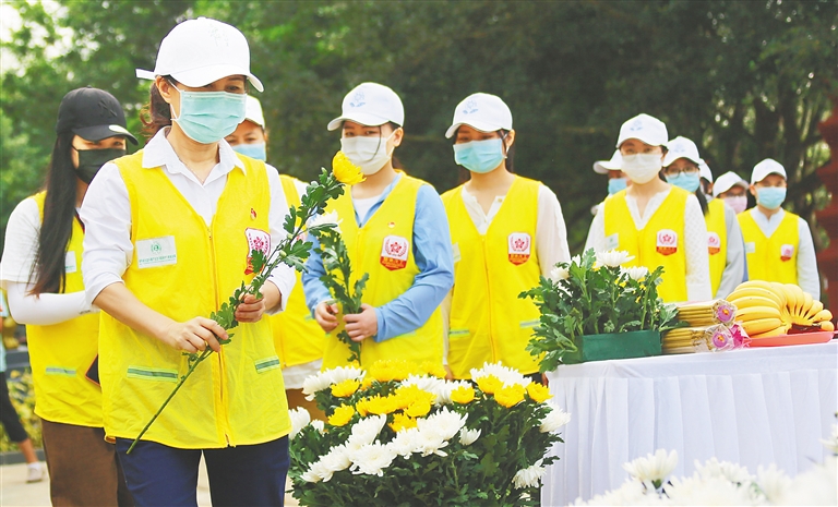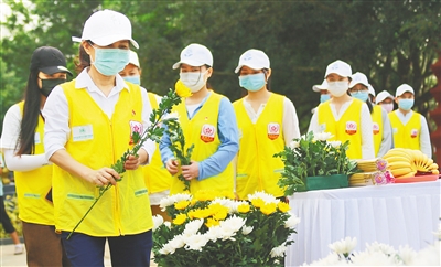 青山默默,松涛阵阵,又是一年清明时。3月30日,在海口颜春岭安乐园,海口市开展清明节集中代祭公益活动。工作人员和20多名志愿者向逝者敬献花篮、追思献花、行拈香礼,为市民代祭。