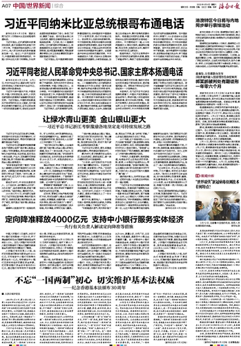 海南日报 中国/世界新闻综合 007 2020-04-041 2020年04月04日 星期六