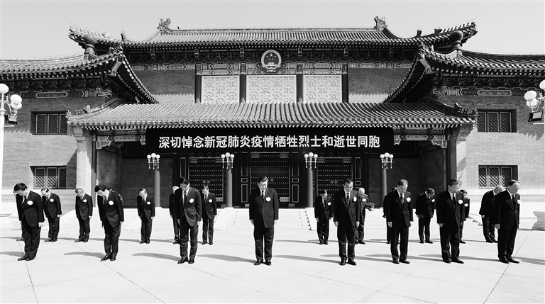 10时整,防空警报鸣响,习近平等向新冠肺炎疫情牺牲烈士和逝世同胞默哀。