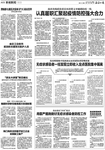 海南日报 本省新闻综合 003 2020-04-051 2020年04月05日 星期日