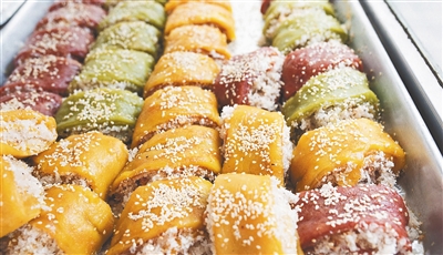 杂粮:琼海有许多适合一个人吃的小吃,不可错过的便是杂粮。在嘉积镇金海路的杂粮一条街里,各种粑类五颜六色,一一陈列在干净卫生的玻璃柜里,吃什么随意点。椰子冻、蛋黄酥、信封饼、笠、锅巴、酸粉等,都是让人欲罢不能的小吃。