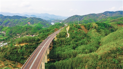 | 群山中穿行的琼乐高速琼中段,被一片嫩绿包围着。