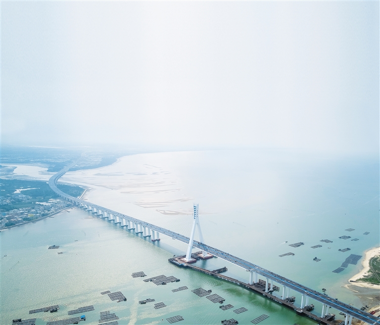| 高空航拍跨海而过的海文大桥。 本报记者 袁琛 摄 |