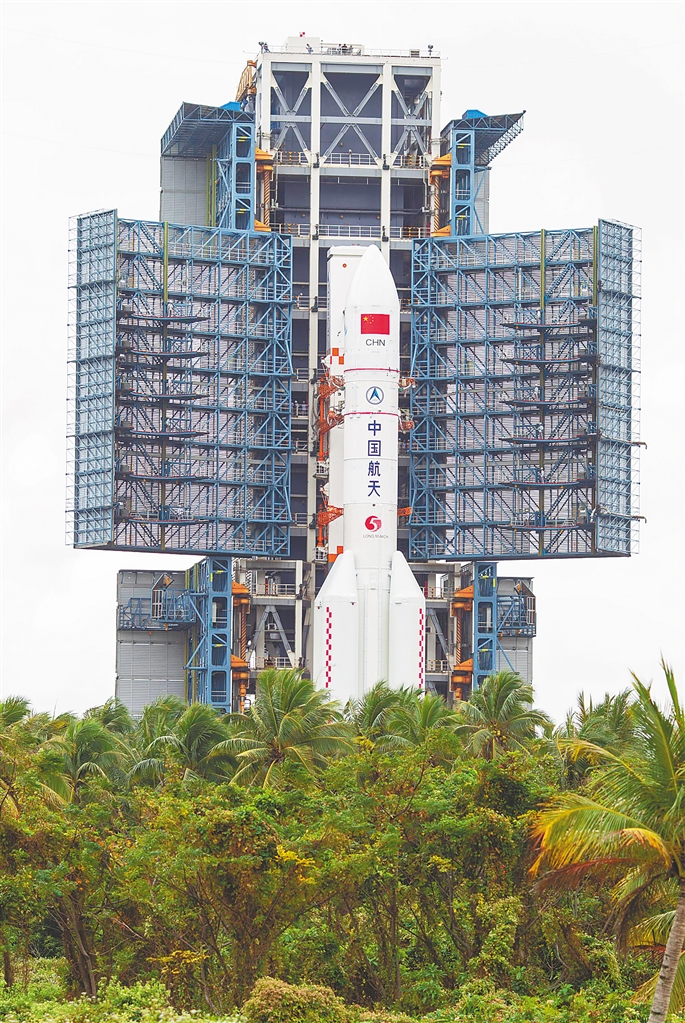 | 2019年12月21日,长征五号遥三运载火箭在中国文昌航天发射场垂直转运至发射区。