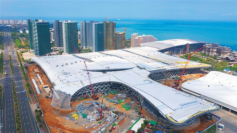 一年多时间过去,这片曾经的临海平地新颜初显。项目预计2023年底竣工投运,届时将与海棠湾免税城形成南北呼应的格局,助力海南国际旅游消费中心建设。