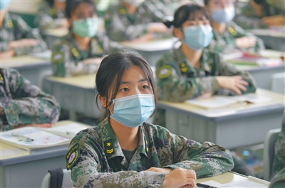 ① 4月13日,海南第六批驰援湖北医务人员、随队记者走进海南江东中学,通过直播的形式分享一线抗疫故事,不少师生被深深打动。本报记者 袁琛 摄