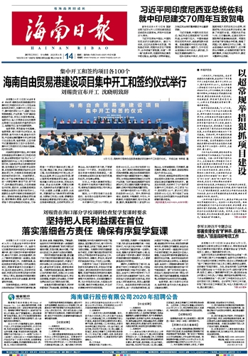 第003版:关注海南自贸港建设项目集中开工和签约活动