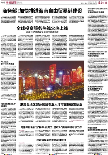 第002版:关注海南自贸港建设项目集中开工和签约活动