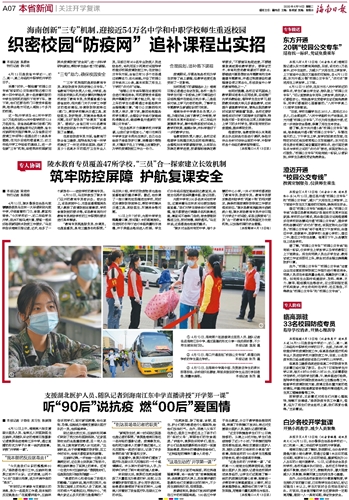 海南日报 本省新闻关注开学复课 007 2020-04-141 2020年04月14日 星期二