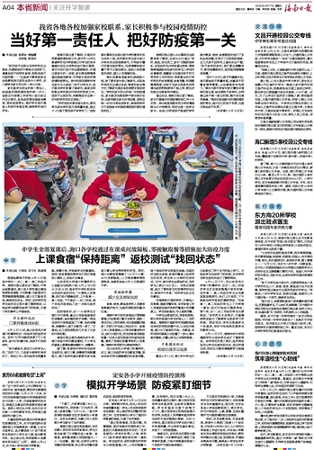 海南日报 本省新闻关注开学复课 004 2020-04-171 2020年04月17日 星期五