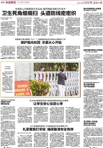 “为最大限度减少学生在上学放学中发生交叉感染的可能性,我们开设了校园公交专线,向乡镇学生周五下午从县城回家及周日下午返校提供免费乘车服务。”陵水县交通局副局长刘嵘告诉记者,校园公交专线根据学校学生需求进行车辆调配,目前共有海南陵水实验学校初级中学、陵水中学、陵水民族中学等3所学校申请,近2400名学生享受该项服务。