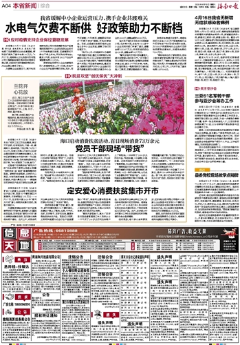 海南日报 本省新闻综合 004 2020-04-181 2020年04月18日 星期六