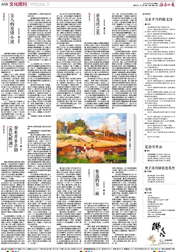 我们脱了鞋子,在沙滩上走来走去,边走边唱。累了,就找一个洞穴休息。说是洞穴,其实是有心人在沙滩边的一块凹地铺了一些树枝、绿叶,上面把就近的两棵枝叶茂密的小树弄弯,用绳子绑起来,以作遮荫,搭成了一个树枝和绿叶织成的帐篷。我们就在那样的帐篷里休息,吃了早准备好的面包、火腿、榨菜,并睡了一个午觉。起来后,我们去游泳,游得累了,就把自己埋在沙子里,太阳下的沙子又是温热的,埋住了整个身子,痒痒的,一种奇妙的感觉漫过全身。当时就想,要永远能这样就好了。