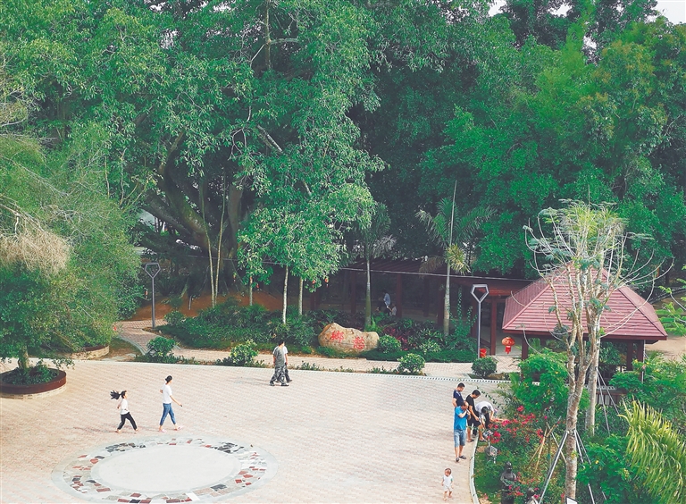 走近新风村新时代文明实践站,不少人都以为到了景区,最吸引人的是204年高龄的高山榕树,茂密树冠高达4层楼,树身五六个人张开手臂围不拢。儋州投资约660万元建设了综合楼、广场、种植池、舞台、花架、草坪、路灯,种植多种乔灌木等,建设设施完善的新时代文明实践新阵地。