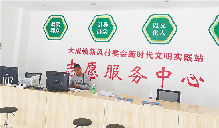 这里是新时代文明实践的新阵地,大量内容丰富的志愿服务活动不时在广场举行。“今年1月初举办了儋州调声和山歌比赛,歌唱党的乡村振兴、脱贫攻坚好政策,周边村民都来了,广场挤满人。2月至今,新时代文明实践站的广播还天天播发防疫信息。”新风村党支部书记、志愿服务中队中队长李可祥说,村干部、村民都是志愿者,一起传播文明新风。