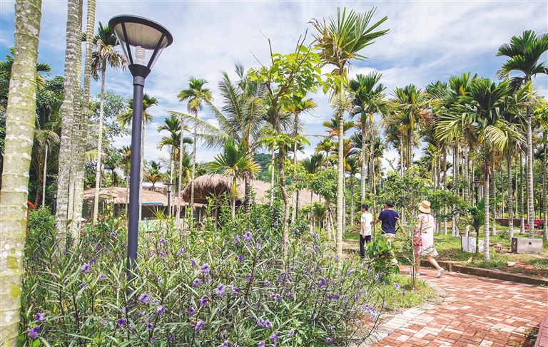 4月14日上午,保亭三道镇什进村椰影婆娑,一栋栋别墅掩映在苍翠之间。“10年前我家还住在茅草房里,现在都住上小洋楼了。”什进村村民吉秀美说,依靠村里发展的旅游业,她家开起民宿吃了上“旅游饭”。