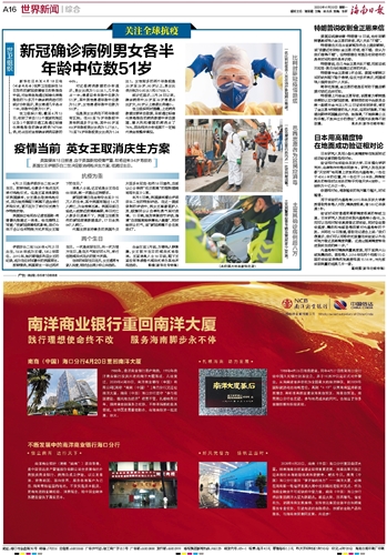 | 海南日报 世界新闻综合 016 2020-04-201 2020年04月20日 星期一 |