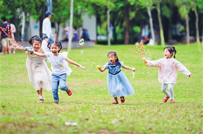 4月18日,海口万绿园内,不少市民游客在谷雨时节携家人朋友一同前来游玩。 本报记者 封烁 摄