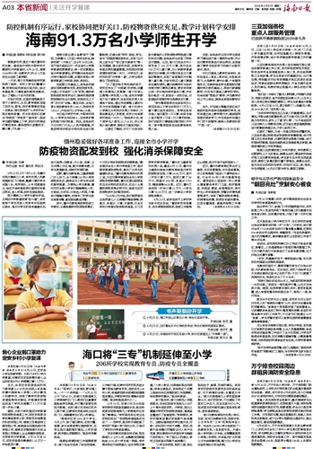 海南日报 本省新闻 关注开学复课 003 2020-04-211 2020年04月21日 星期二